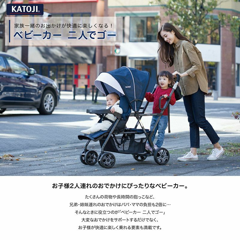 他の画像を見る 年齢の近いきょうだいを子育て中のママパパ必見!コンパクトな二人乗りベビーカー カトージ 二人乗りベビーカー 二人でゴー リミテッド[選べる2色] 後席+キッズボードで座っても立っても乗れる2WAY仕様【前席:4ヶ月~体重20kg/後席:2歳半~体重20kg】 ¥ 38,500 税込 販売期間 2025/04/15 10:00 〜 カートに入れる お気に入り登録 (0)
