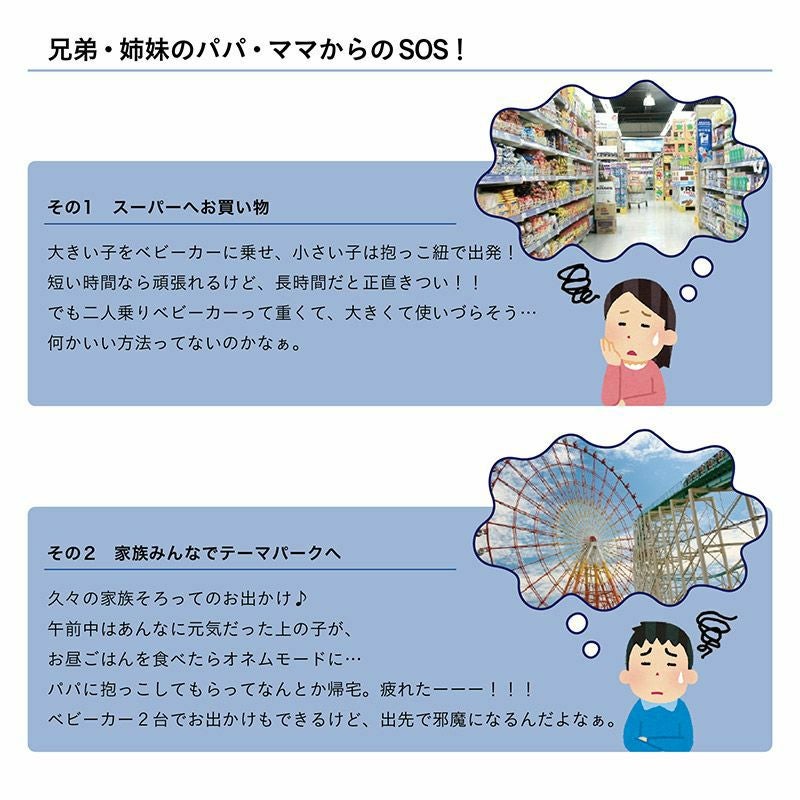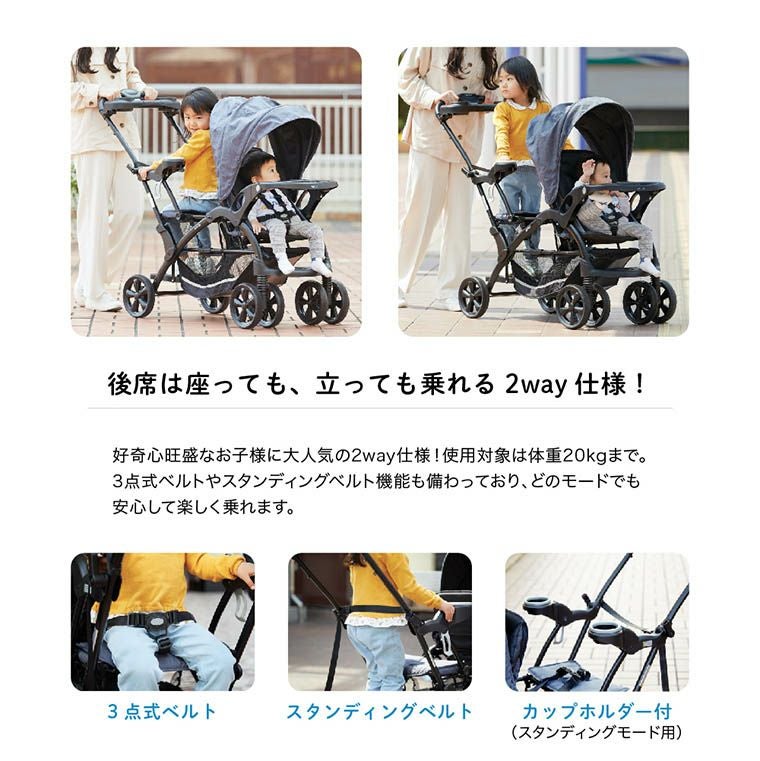 他の画像を見る SALE! 直営店限定 【WINTER SALE】年齢の近いきょうだいを子育て中のママパパ必見!コンパクトな二人乗りベビーカー カトージ 二人乗りベビーカー 二人でゴー(ブラック)後席+キッズボードで座っても立っても乗れる2WAY仕様【前席:4ヶ月~体重20kg/後席:2歳半~体重20kg】 通常価格 ¥ 29,480 のところ ¥ 22,800 税込 販売期間 2026/01/31 0:00 〜 2026/02/15 23:59 カートに入れる お気に入り登録 (0)
