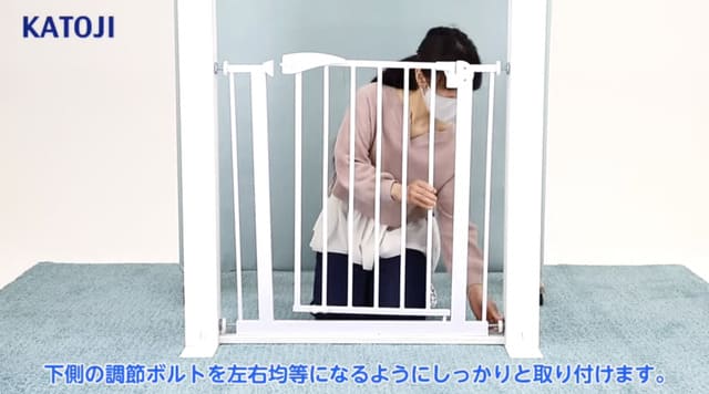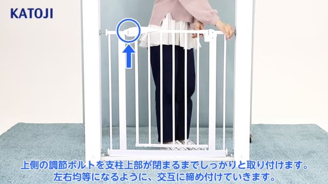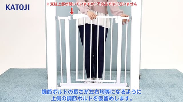 ベビーゲートを安全に使うためには、正しく設置をすることが大切です。ここでは、カトージのベビーセーフティオートゲートを例に、突っ張り式ベビーゲートの取り付け方を解説します。