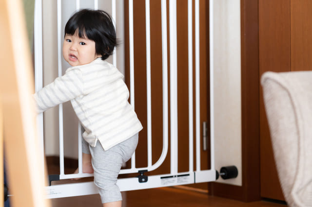 赤ちゃんが成長すると、ゲートの先に行きたがるようになります。力ずくで先に進もうとすることがあるため、置くだけのベビーゲートでは倒れてしまう可能性があるでしょう。
