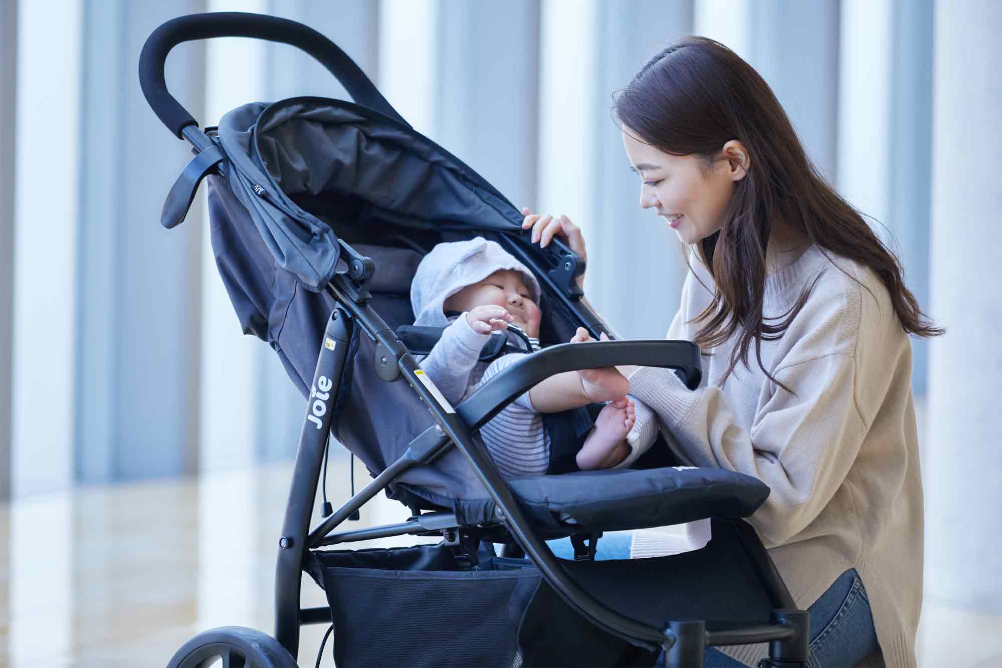 特に前向きベビーカーは視界が開けているため、赤ちゃんが興味のあるものに手を伸ばしてしまう場面もありますよね。狭く混雑した道や商品が陳列されている店などでも立ち止まらないよう、少しの力で前後左右スムーズに動かせるベビーカーであれば快適にお出かけを楽しめます。