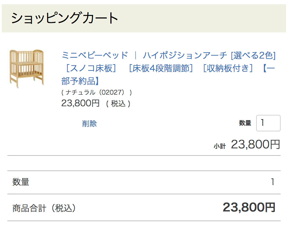 ショッピングカート画面