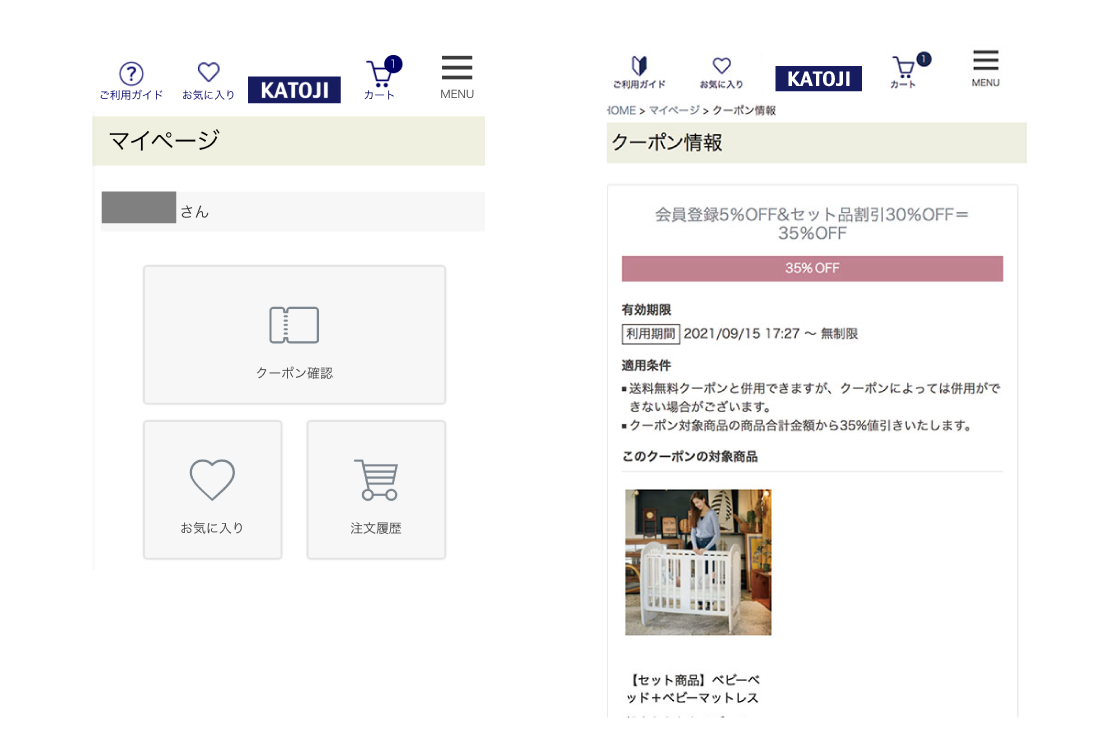 取得されたクーポンはログイン後にマイページからご確認いただけます。