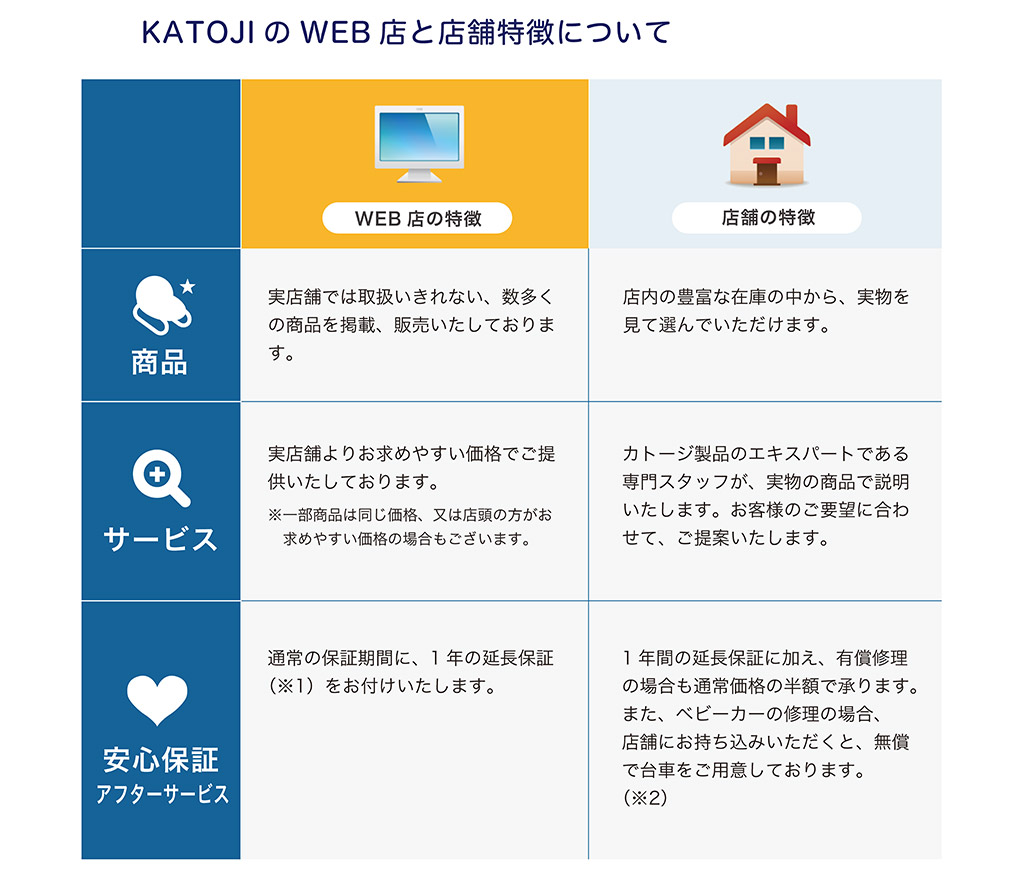 KATOJIでは「Web店」と「実店舗」での品揃え